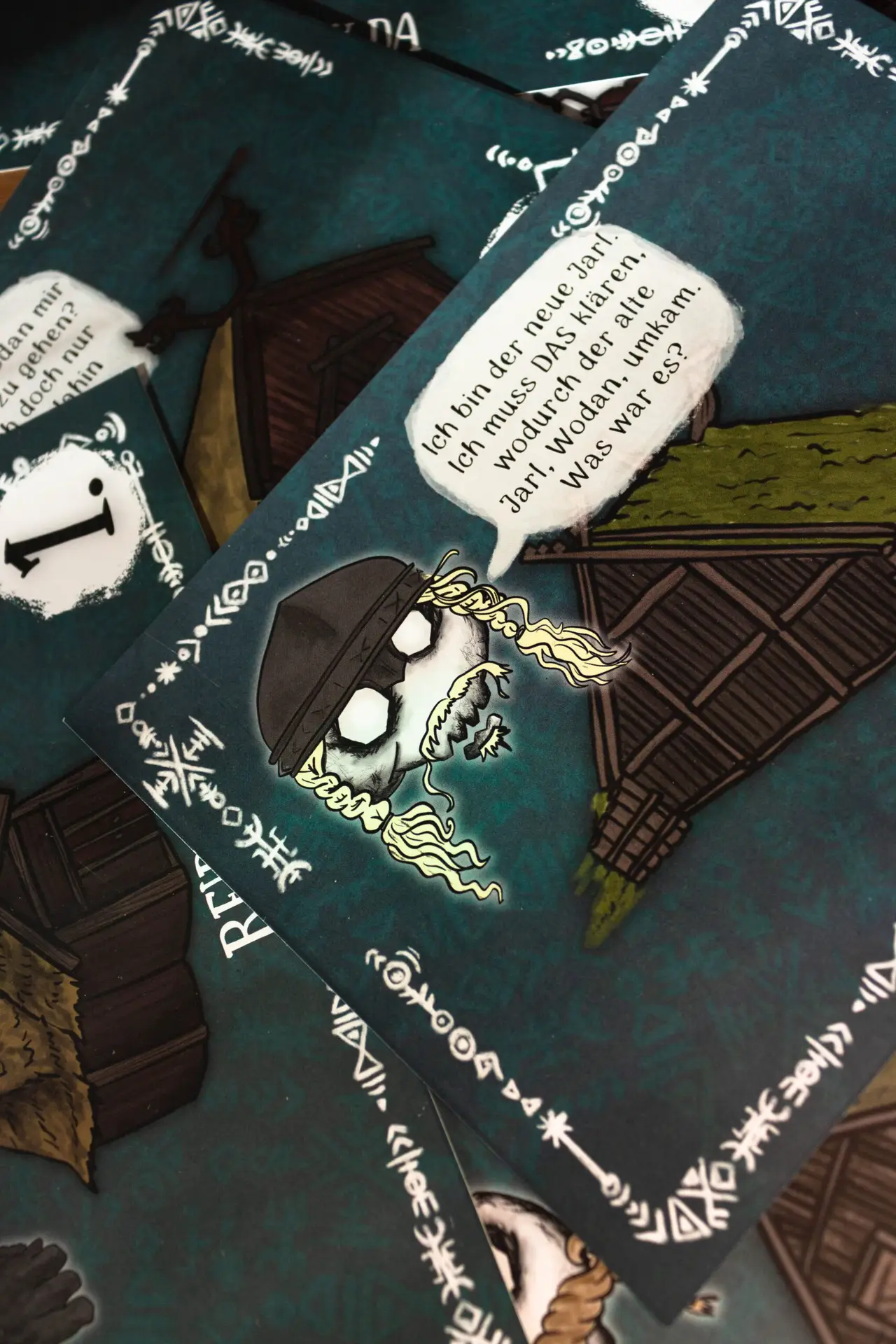 Die isolierte Insel Eisvik leidet unter der Tyrannei des inkompetenten Jarls Wodan. Was einst ein freies, fortschrittliches Wikingerdorf war, ist zu einem Ort der Unterdrückung geworden: Neue Religion, verbotene Traditionen, ermordete Navigator:innen. Die tödlichen Strömungen um die Insel halten alle gefangen – nur wer die geheimen Navigationsrouten kennt, kann entkommen.